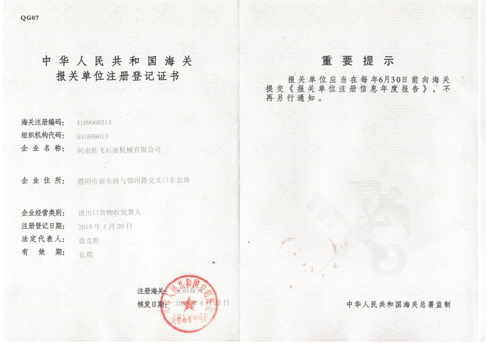 • 海關(guān)報(bào)關(guān)單位注冊登記證書